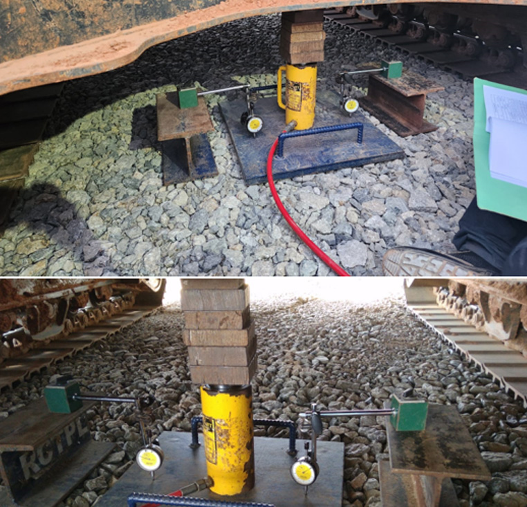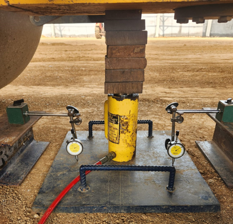 - Load was applied on the plate by a hydraulic jack of 30 ton capacity by reaction obtained from the Truck. Pressure on the jack was recorded from a calibrated pressure gauge placed between the jack and hydraulic pump.
