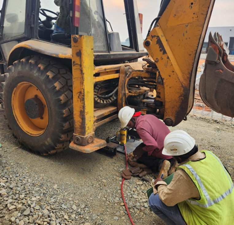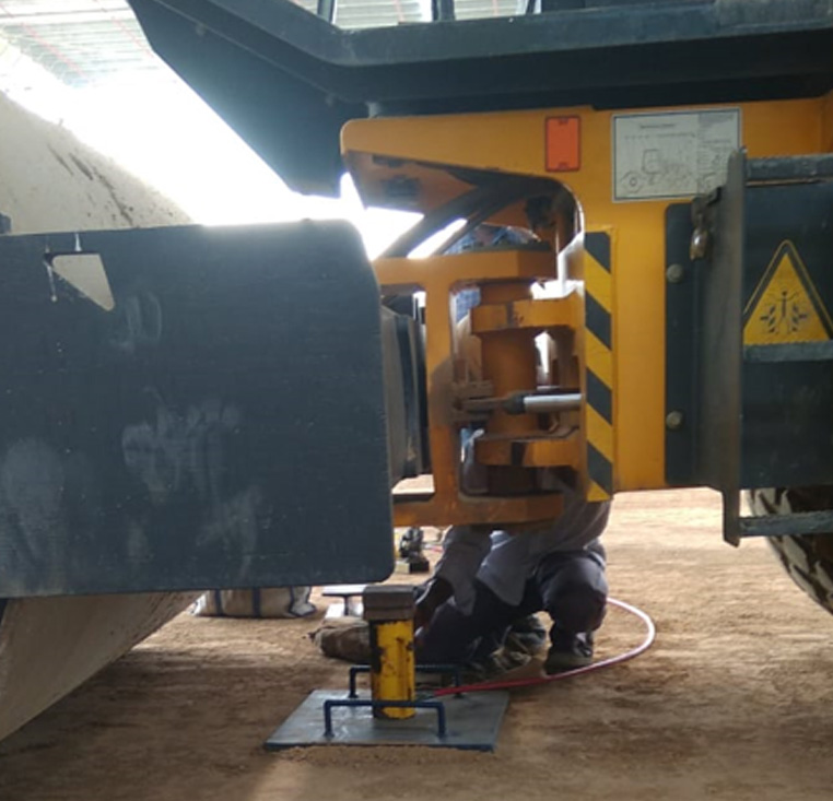 - Load was applied on the plate by a hydraulic jack of 30 ton capacity by reaction obtained from the Truck. Pressure on the jack was recorded from a calibrated pressure gauge placed between the jack and hydraulic pump.